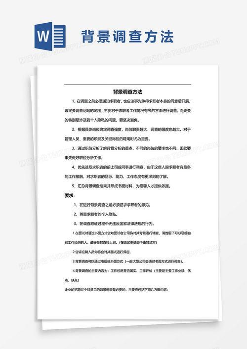 你知道吗?在现代社会,背景调查已经成为了职场中不可或缺的一环。这不,最近有个朋友就遇到了罗氏背景调查,结果让他大吃一惊。今天,就让我带你一起揭开罗氏背景调查的神秘面纱,看看它都包含了哪些内容吧!